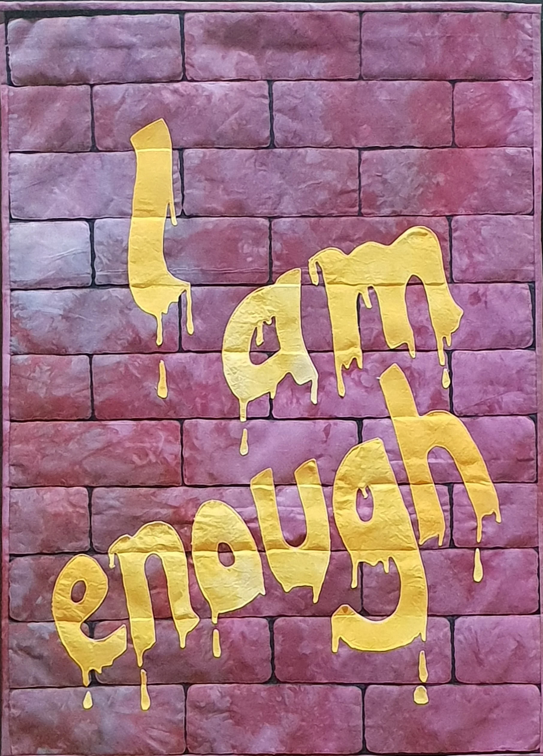 Black cotton, hand painted with Lumiere, free motion quilted.