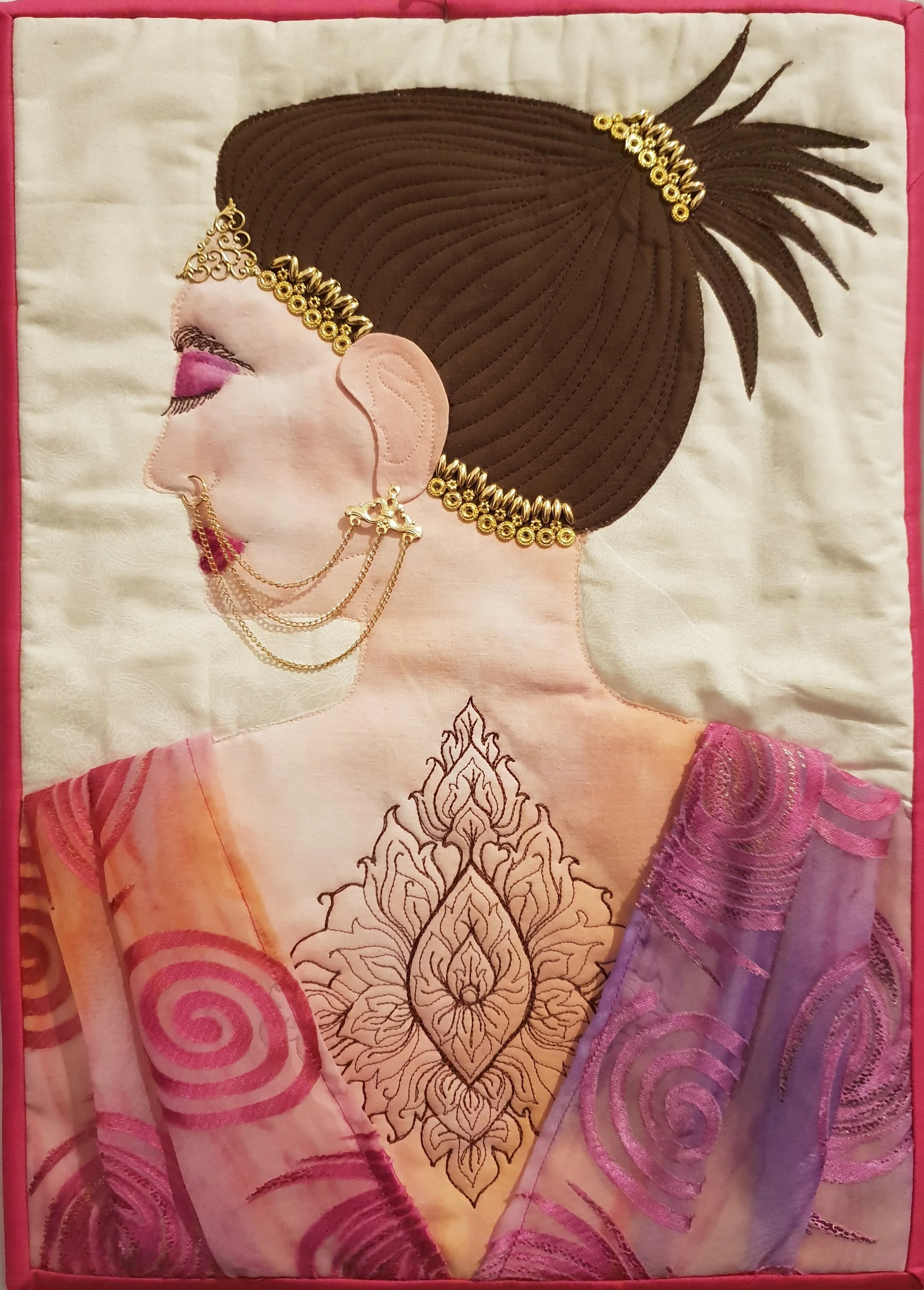 Thai Silk, metallic thread, beads.