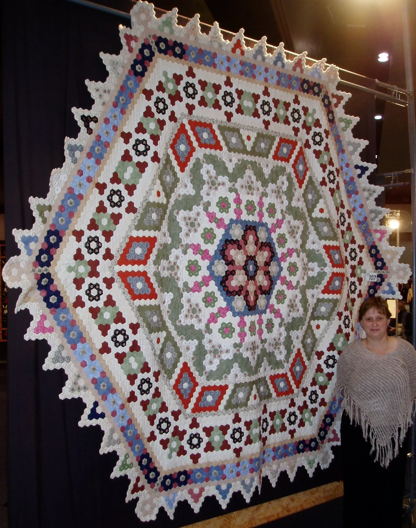 Commercial cotton, hand pieced hexagons.
